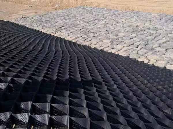 土工格室是由高強度的HDPE寬帶,經過強 力焊接而形成的一片網狀格室結構。它伸縮自如,運輸時可縮疊起來,使用時張開并充填土石、或混凝土料,構成具有強大側向限制和大剛度的結構體。它可用來做為墊層,處理軟弱地基的承載能力,也可鋪設在坡面上構成坡面防護結構,還可以用來建造支擋結構等。施工方便快捷。