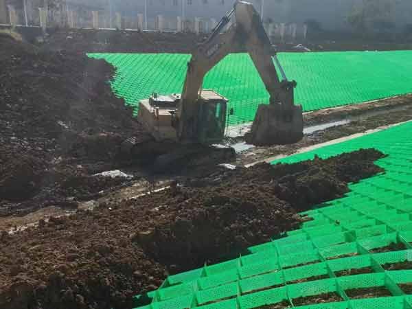 土工格室是由高強度的HDPE寬帶,經過強 力焊接而形成的一片網狀格室結構。它伸縮自如,運輸時可縮疊起來,使用時張開并充填土石、或混凝土料,構成具有強大側向限制和大剛度的結構體。它可用來做為墊層,處理軟弱地基的承載能力,也可鋪設在坡面上構成坡面防護結構,還可以用來建造支擋結構等。施工方便快捷。